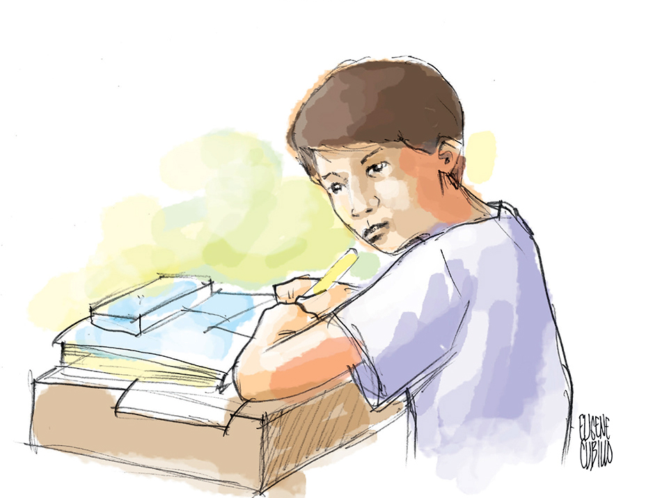 Isang araw habang nakatalikod siya at gumagawa ng kanyang takdang-aralin, narinig niya ang isa niyang pinsan, ”kain ka na, kain na.” Napangiti siya dahil sa unang pagkakataon, natutong mag-alok ng pagkain ang kanyang pinsan.