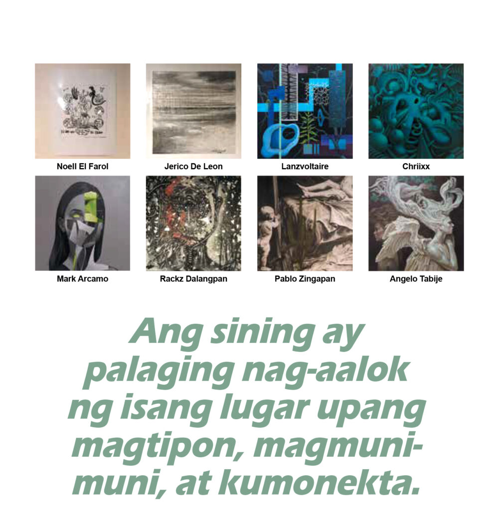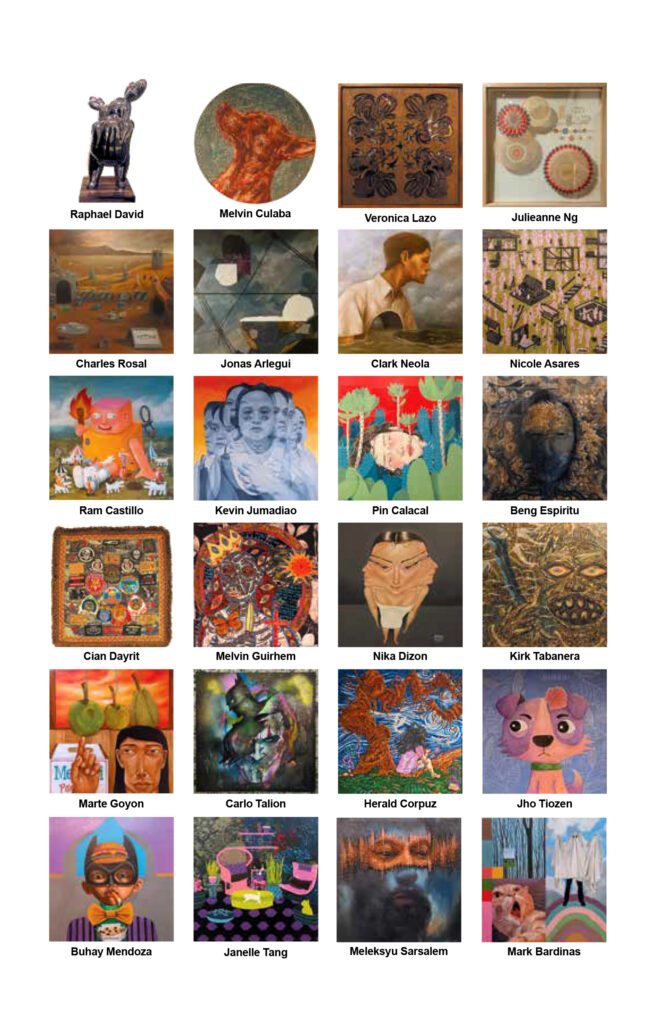 Tampok dito ang gawa ng mga visual artist na sina Pancho Alvarez, Alychon, PJ Andayran, Jed Aralca, Marc Arcamo, Mary Bob Arce, Jonas Arlegui, Nicole Asares, Mikko Baladjay, Jessa Balag, Jet Bernal, Lawrence Borsoto, Pin Calacal, Isagani Calio, Demosthenes Campos, Kiko Capile, Ram Castillo, Arth Chavez, Chrixx, Kendall Colindon, Danie Colita, Herald Corpus, Jho Corpus, Jobert Cruz, Eugene Cubillo, Melvin Culaba, Rene Cuvos, Rhex Dacaymat, Rackz Dalangpan, Raphael David, Cian Dayrit, Jericho De Leon, Mac Delos Reyes, Nika Dizon, Eugene Dominguez, Mac Epawra, Beng Espiritu, Noell El Farol, Babylyn Fajilagutan, Dex Fernandez, Patrick Fernandez, Kim Gaceja, Gean Brix Garcia, Paola Germar, Ikang Gonzales, Lui Gonzales, Marte Goyon, William Gaudinez, Mervin Guirhem, Veronica Ibarreta, Jaysonborts, Jonathan Joven, Natasha Juliano, Kevin Jumadiao, Ange Labyrinth, Cydric Lagunilla, Lanzvoltaire, Genavee Lazaro, Veronica Lazo, Potti Lesaguis, Kim Lim, Jayme Lucas, Lyndon Maglalang, Raymon Maliwat, Clark Manalo, Ronante Maratas, Sarsalem Meleksyu, Buhay Mendoza, Chad Montero, Nic Navarro, Clark Neola, Julieanne Ng, Odang, Gemart Ortega, Kaye Oyek, Anthony Palomo, Sam Penaso, Riane Prim, Pushpin, Ikea Rizalon, Charles Rosal, Kirby Roxas, Art Ruiz, Jose Tence Ruiz, Geremy Samala, Elijah Santiago, Jeje Santos, Oddin Sena, Tintin Sena, Kirk Tabanera, Angelo Tabije, Carlo Tailon, Andrew Tan, Janelle Tang, Abril Valdemoro, David Ryan Viray, Christopher Yap, at Pablo Zingapan.