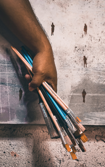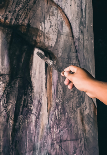 Sandatangpinselnahandangsumagupasa pintura.