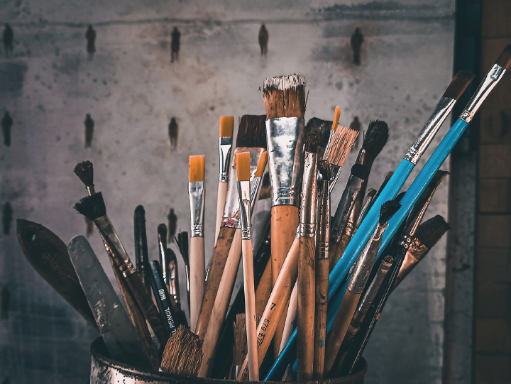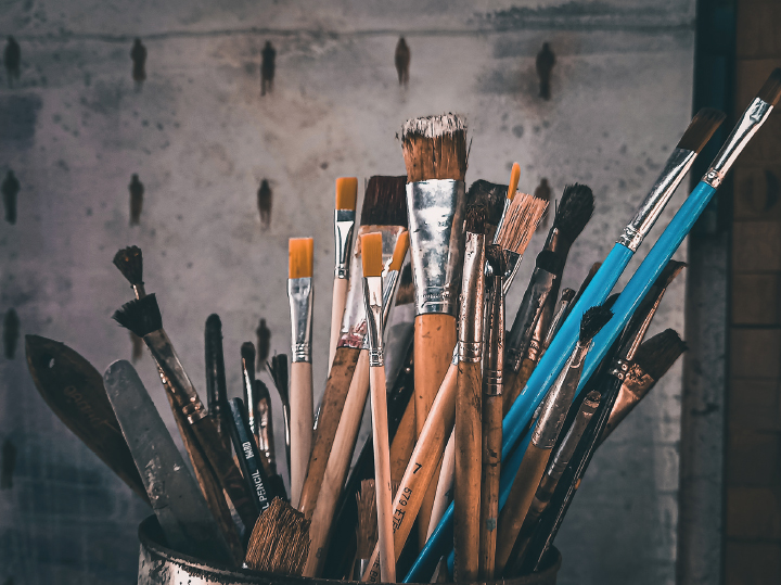 Mga palette knife, iba’tibanghugis at sukat ng samu’tsaringpinsel ang nakahanda para ipahid.