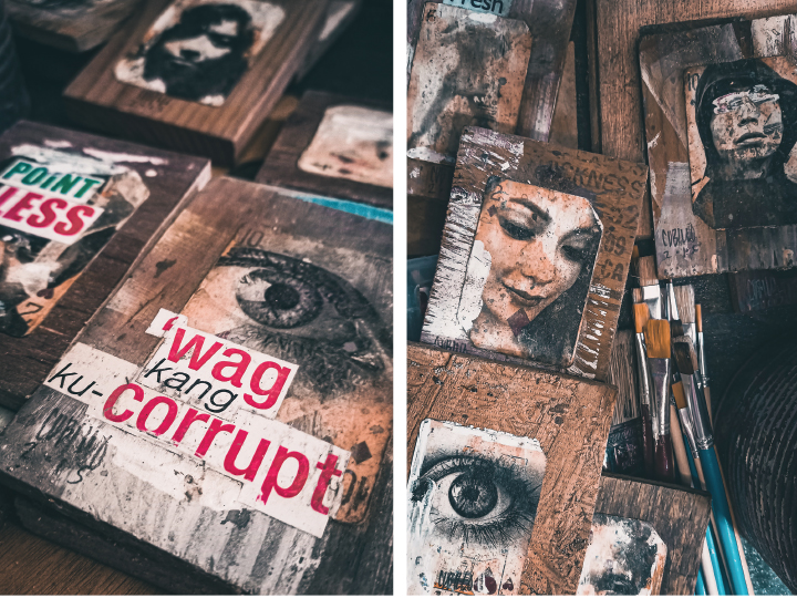 Ilan lang iyan sa araw-araw na aking nakikita sa aming tahanan na kung saan ay studio rin ng aking ama na si Eugene Cubillo, isang alagad ng sining biswal sa pagpinta. Bukod sa traditional medium, madalas ay pinagsama-samang paraan ang kanyang mga obra. Bukod sa kambas at papel, gumagamit din siya ng yero, bakal, baraha, aluminium, kahoy, pako, at iba pang mga found objects.