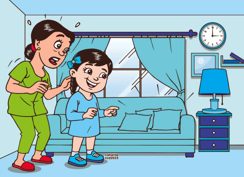 “Nanay Tina, bakit brown ‘yung sapatos na hinahanda mo para kay Daddy? Blue ang pantalon niya at pang-itaas. Dapat ay …..”