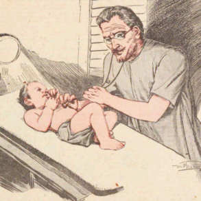 Luminga-linga ang pangit na lalaking natanghal sa liwanag, na wari’y may hinahanap na isang mahalagang bagay. Isang ngiting tigib ng kasiyahan ang namilaylay sa mga labi ng matandang lalaki, nang matapunang-tanaw ang isang memorandum na siyang talaan ng kanyang natuklas na kadalubhasaan. Ibinaling ng pangit na lalaki ang kanyang mga mata sa gawing kaliwa ng maputing mesang tistisan na kinapapatungan ng umiiyak na sanggol. Isang malutong na halakhak ang pinawalan sa mga labi ng ubaning lalaki, nang makita niya ang isang dagang kosta na tatalun-talon sa munting kulungang metalika.